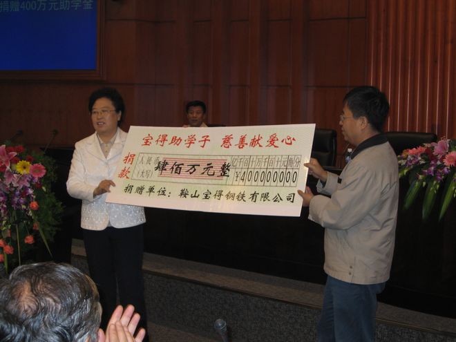 "寶得教育基金":2006年,在鞍山市第十三中學(xué)50周年校慶時,寶得公司一次性捐資100萬元用于獎勵優(yōu)秀學(xué)生教師、資助寒門學(xué)