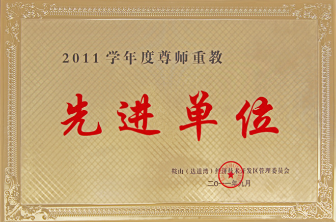 2011年9月,公司被鞍山(達(dá)道灣)經(jīng)濟(jì)技術(shù)開(kāi)發(fā)區(qū)管理委員會(huì)授予“2011學(xué)年度尊師重教先進(jìn)單位”。