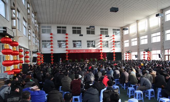 2月16日農(nóng)歷初七,是春節(jié)后第一個(gè)工作日,公司1500名員工(不包括在崗員工)歡聚一堂,在網(wǎng)球場召開每年一度的全體職工大會(huì)。