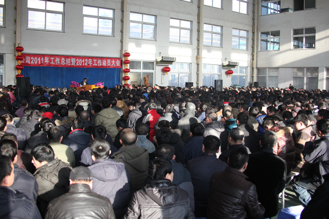 正月初七,公司在網(wǎng)球場(chǎng)召開(kāi)每年一度的全體員工大會(huì),總經(jīng)理張鐵漢在會(huì)上做2011年工作總結(jié)暨2012年工作規(guī)劃。董事長(zhǎng)在會(huì)上做重要講話。