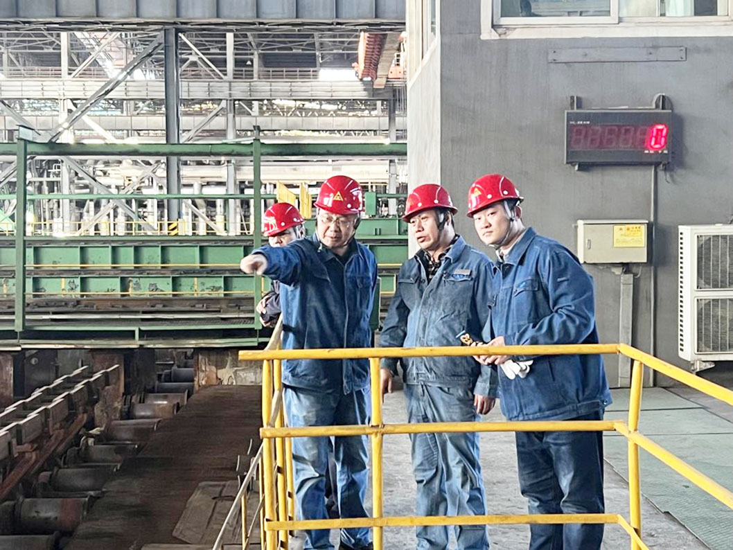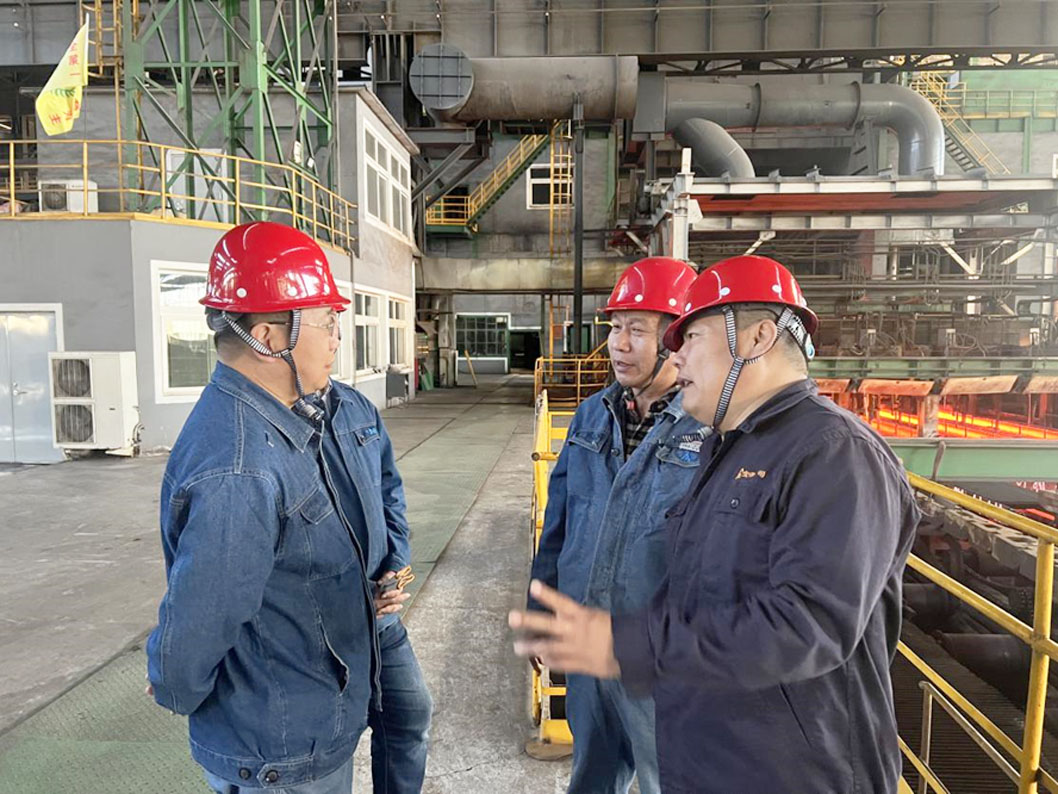 督導(dǎo)組組長楊殿新在煉鋼廠連鑄生產(chǎn)現(xiàn)場與公司生產(chǎn)經(jīng)理兼安全總監(jiān)陳旭東及煉鋼廠廠長閆海龍進(jìn)行交流